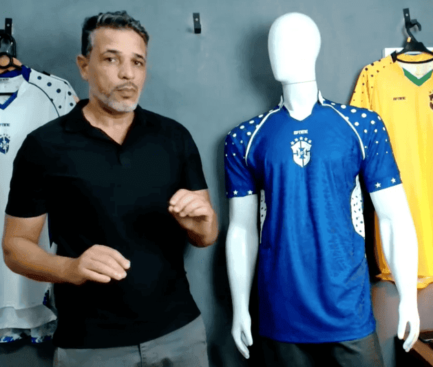 Hoje, ele ensina como qualquer pessoa pode criar, modelar, personalizar e vender uniformes com padrão profissional em até 48h — mesmo começando do zero.